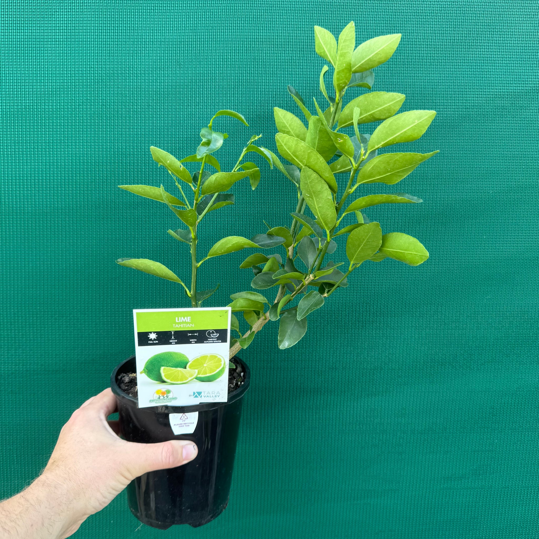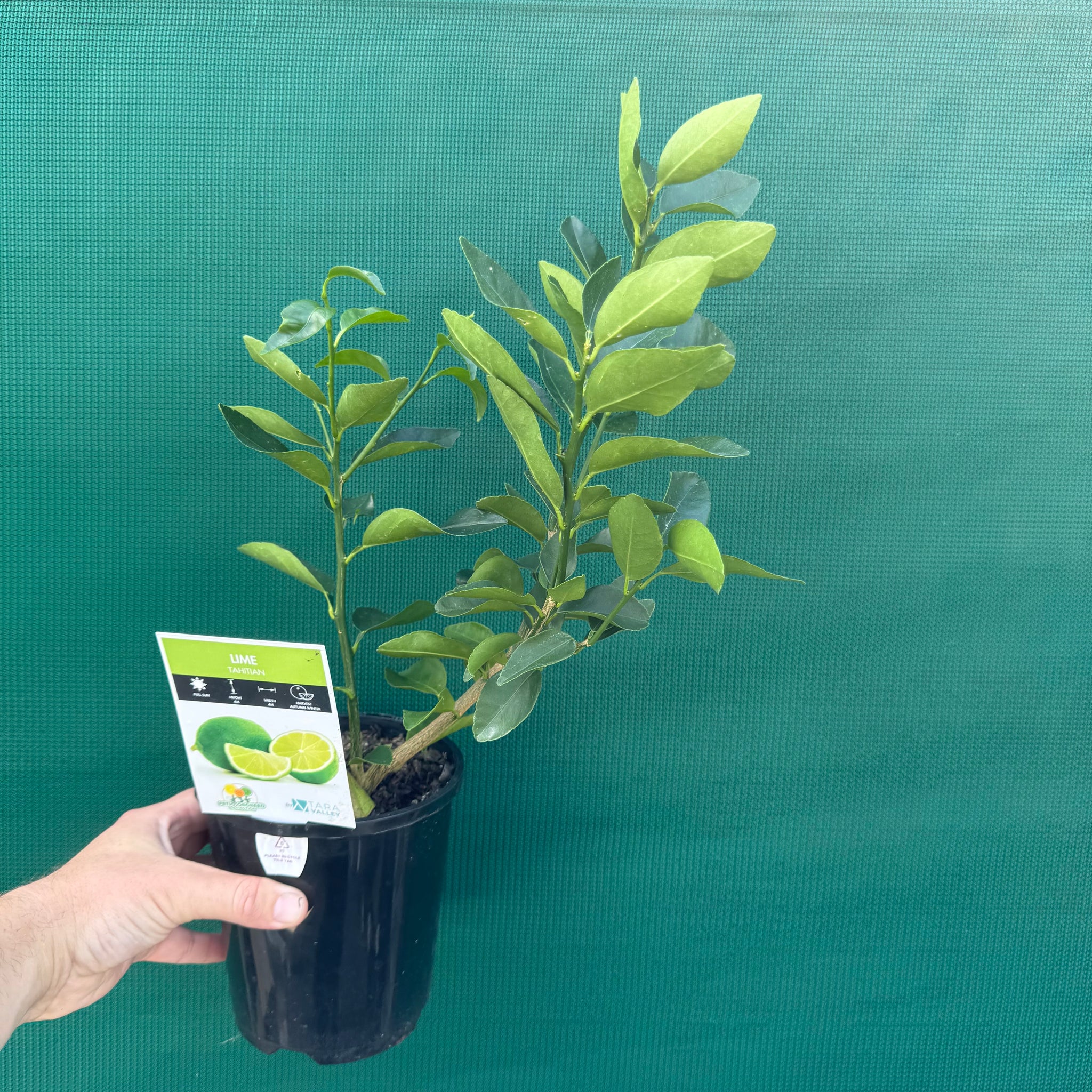 Description: Tahitian Lime (Citrus latifolia) is a vigorous, nearly thornless citrus tree that grows around 3–4 m tall, making it suitable for both backyard gardens and large pots. It produces medium to large, seedless green limes with a tangy, refreshing flavor, and is valued for its heavy and regular crops, often fruiting year-round in warm climates with peak harvests in late summer to autumn. The glossy evergreen foliage and fragrant white blossoms add ornamental appeal, while its reliable fruiting provides a steady supply for cooking, drinks, and desserts. Thriving in full sun and well-drained soil, Tahitian Lime is a hardy and versatile choice for home growers.